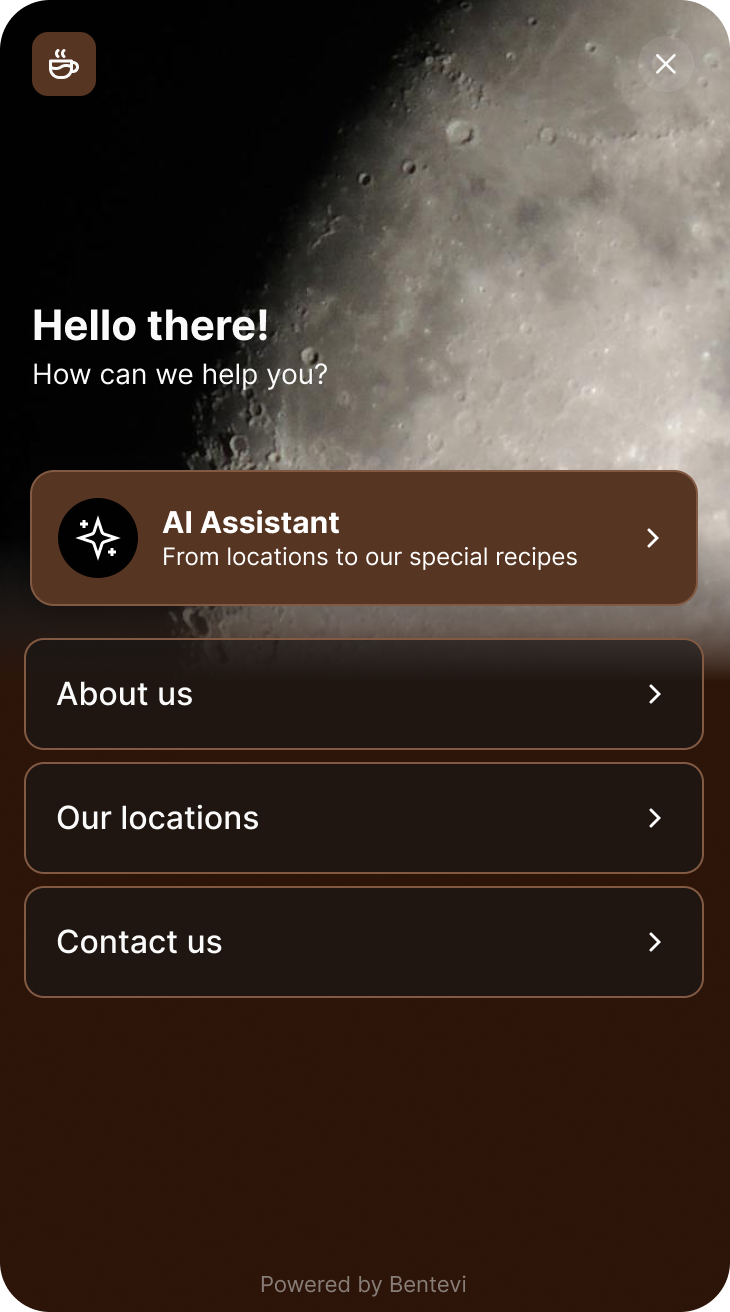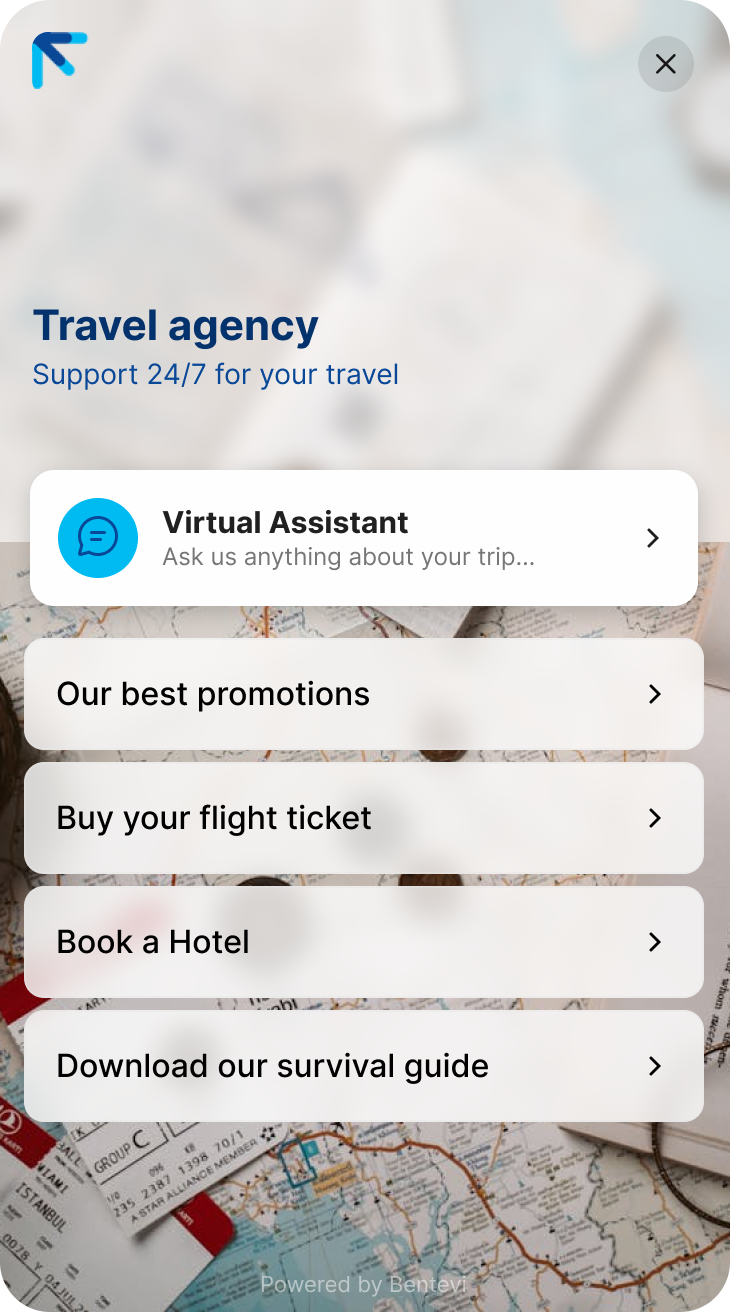 Customize the welcome screen and the chat experience with your company's style — colors, fonts, tone, and personality.